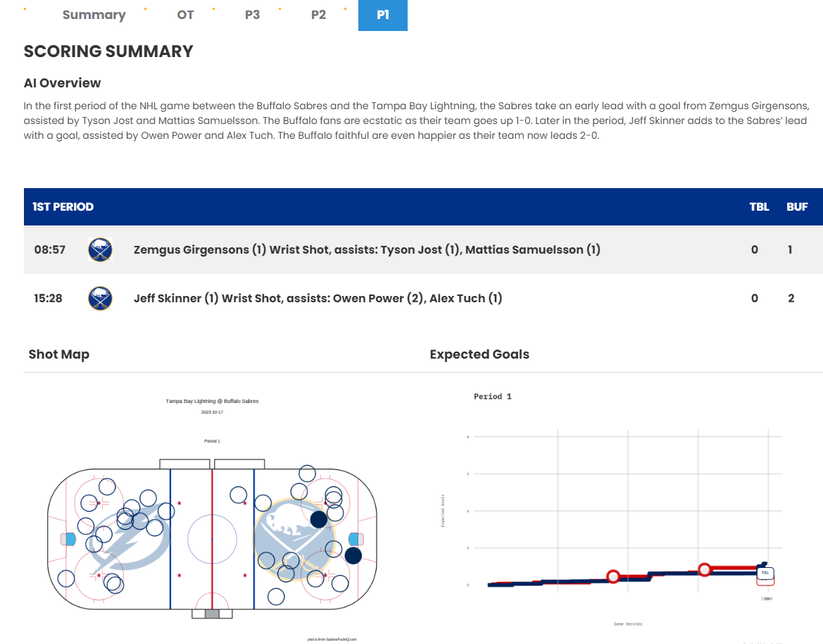 - A handler set up to call a Large Language Model (LLM) to give me a text summary of each period / game summary. The summary would be based on the stats for that period that I would feed the LLM.