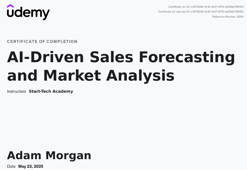 Udemy course #1:  https://netrix.udemy.com/course/ai-sales-forecasting-market-analysis/