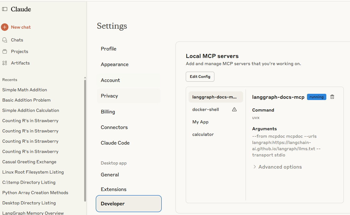 In “Settings” – “Developer”, I added the tool to the config.