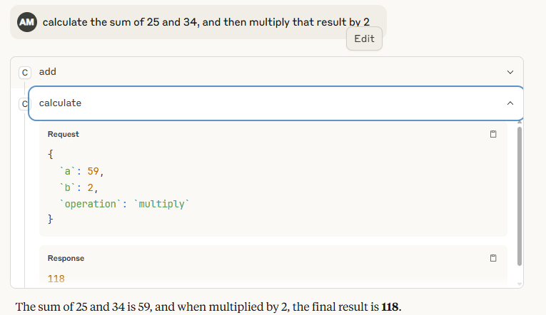 We can see that the “add” tool satisfied the prompt