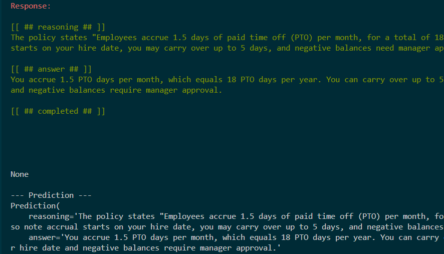 instructions='Answer HR questions using retrieved context, with step-by-step reasoning.'