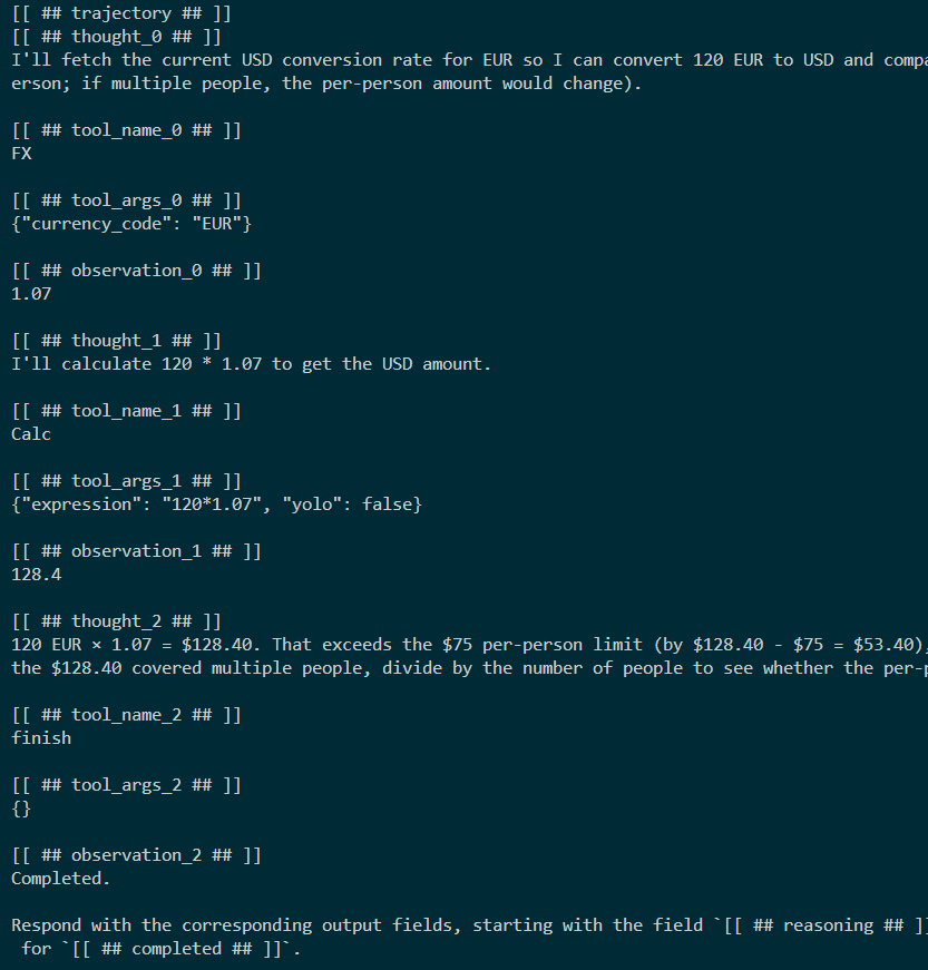 The DSPy History is super interesting – it gives us an example of what it is sending to the LLM.
